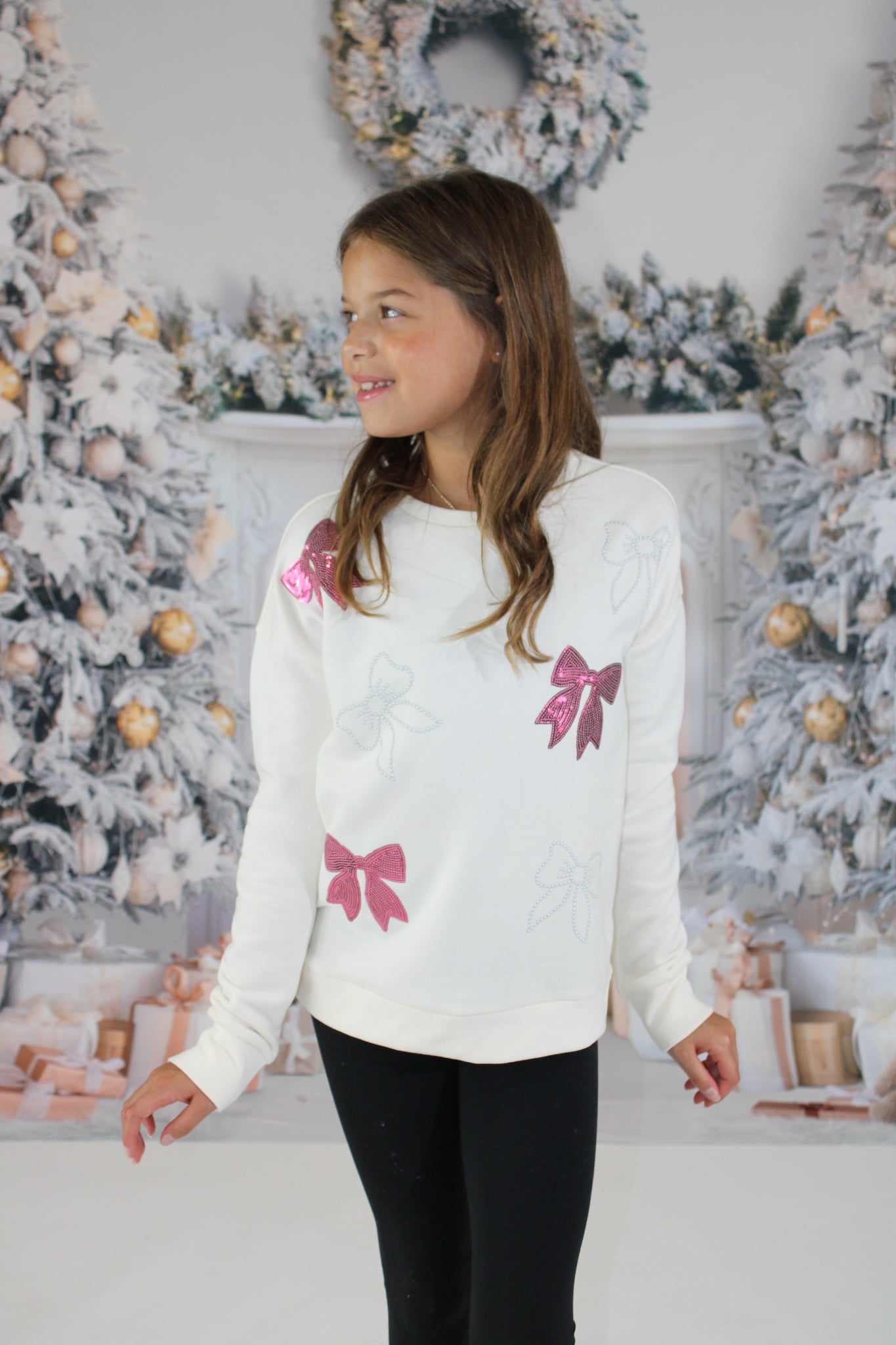 Make her holiday shine with a piece that feels magical from every angle. Part of our Christmas Collection, this fleece sweatshirt brings the season’s sparkle to life with bows adorned in pearls and sequins — a festive touch that twinkles with every move. Cozy, charming, and beautifully crafted, it’s the perfect style for celebrations, photos, and every joyful moment ahead.