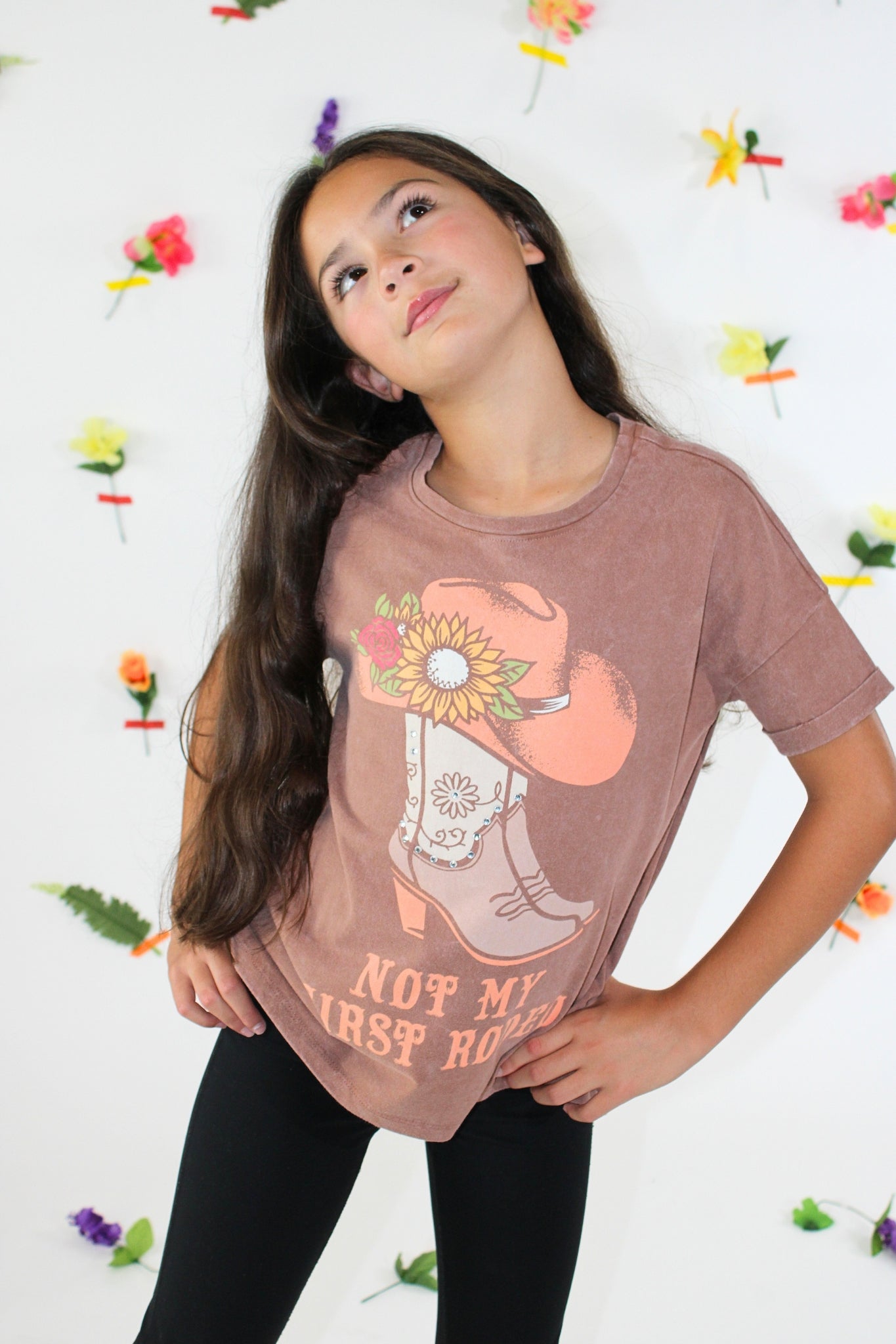Show off your confident style with our Not My First Rodeo Tee! This playful graphic t-shirt features a cowgirl boot paired with a cowgirl hat, perfectly accented by the fun phrase “Not My First Rodeo.” Made from soft, comfy fabric, this tee is perfect for school days, weekend adventures, or any time your little cowgirl wants to show off her fun, fearless attitude. Sweet Soul combines trendy graphics, comfort, and personality to create a wardrobe favorite for girls who love style with a touch of sass.